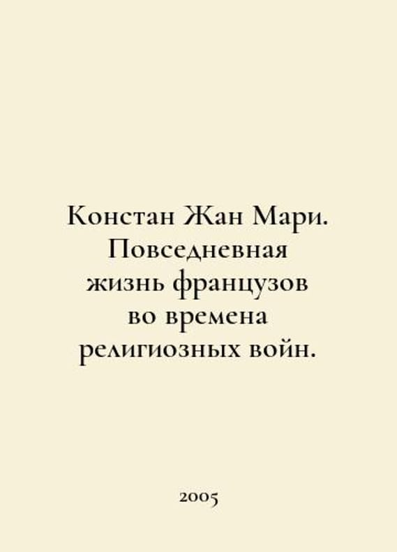 Constantin Jean Marie. Everyday life of the French in times of religious wars. In Russian /Konstan Zhan Mari. Povsednevnaya zhizn frantsuzov vo vremena religioznykh voyn. Series: Living History: Everyday Life of Humanity M Young Guard 2005. You are welcome to reach out to us for a detailed description of the copies currently available. Delivery of this book may take longer than usual including extended processing and pre-shipping time, no expedited shipping is available. Please advise us if you have a set date or a deadline to receive your order.SKUalbd41d293437c19ea9