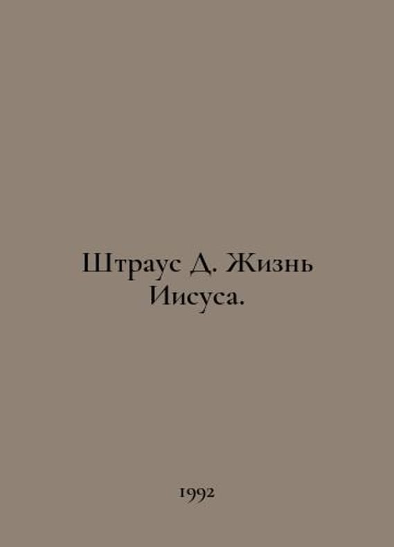 Strauss D. The Life of Jesus. In Russian /Shtraus D. Zhizn Iisusa. N.1, 2 per.m Republic of 1992. You are welcome to reach out to us for a detailed description of the copies currently available. Delivery of this book may take longer than usual including extended processing and pre-shipping time, no expedited shipping is available. Please advise us if you have a set date or a deadline to receive your order.SKUalbd4dcd5ece1669e1b