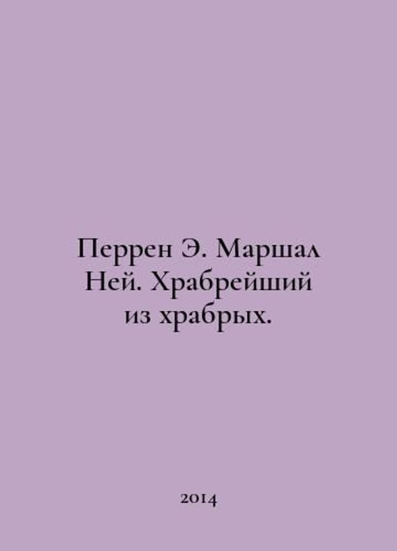 Perrin E. Marshall Ney. Brave of the Brave. In Russian /Perren E. Marshal Ney. Khrabreyshiy iz khrabrykh. Translated from the French by E. A. Factor. St. Petersburg: Kriga, 2014. You are welcome to reach out to us for a detailed description of the copies currently available. Delivery of this book may take longer than usual including extended processing and pre-shipping time, no expedited shipping is available. Please advise us if you have a set date or a deadline to receive your order.SKUalbd5dc8440d4f7713a