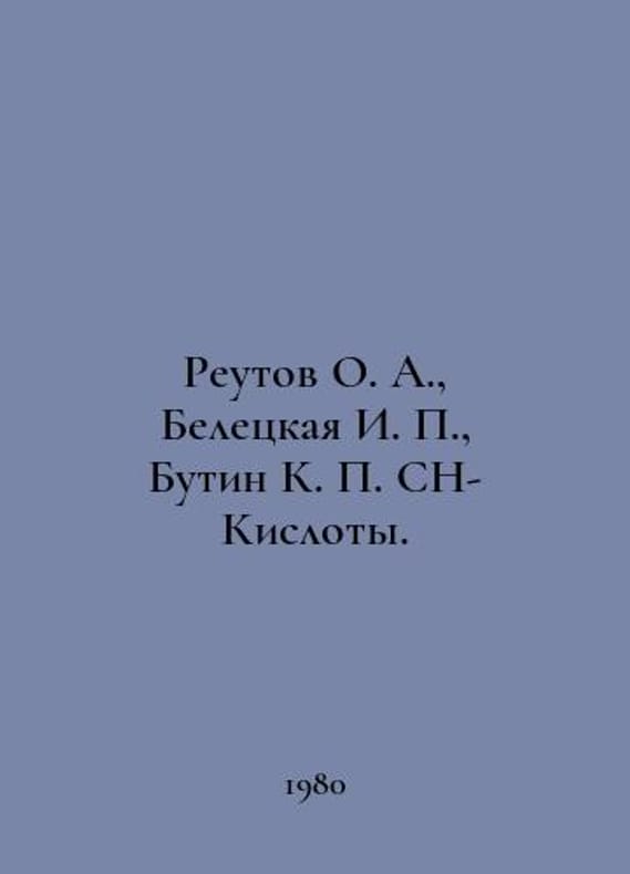 Reutov O. A., Beletskaya I. , Butin K. SN-Acid. In Russian /Reutov O. A., Beletskaya I. , Butin K. SN-Kisloty. Monograph. M. Science 1980..You are welcome to reach out to us for a detailed description of the copies currently available. Delivery of this book may take longer than usual including extended processing and pre-shipping time, no expedited shipping is available. Please advise us if you have a set date or a deadline to receive your order. SKUalbd62aab43eb3ccc85
