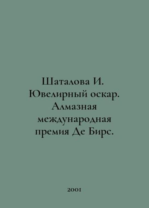 Shatalova I. Jewelry Oscar. De Beers Diamond International Prize. In Russian /Shatalova I. Yuvelirnyy oskar. Almaznaya mezhdunarodnaya premiya De Birs. M. Jeweler-Inform 2001.You are welcome to reach out to us for a detailed description of the copies currently available. SKUalbd63774f371d165c0.