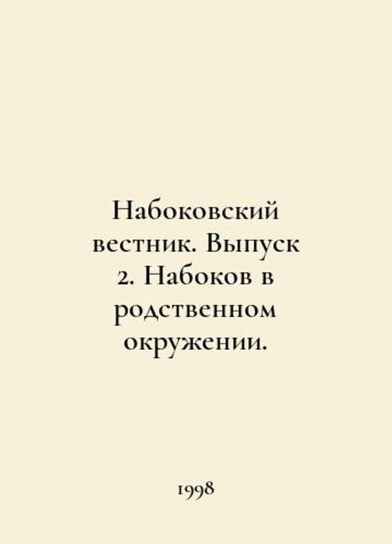 Nabokov Bulletin. Issue 2. Nabokov in a kindred environment. In Russian /Nabokovskiy vestnik. Vypusk 2. Nabokov v rodstvennom okruzhenii. Scientific Editor V. Stark. S.-Pb.Dorn 1998. You are welcome to reach out to us for a detailed description of the copies currently available. Delivery of this book may take longer than usual including extended processing and pre-shipping time, no expedited shipping is available. Please advise us if you have a set date or a deadline to receive your order.SKUalbd6aff3785d47228f