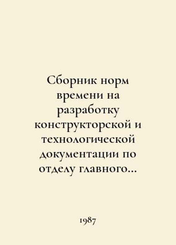 Compendium of time standards for the development of design and technological documentation for the Chief Technologists Department. In Russian /Sbornik norm vremeni na razrabotku konstruktorskoy i tekhnologicheskoy dokumentatsii po otdelu glavnogo tekhnologa. Petrozavodsk 1987.You are welcome to reach out to us for a detailed description of the copies currently available. SKUalbd94165e0aa4d19fd.
