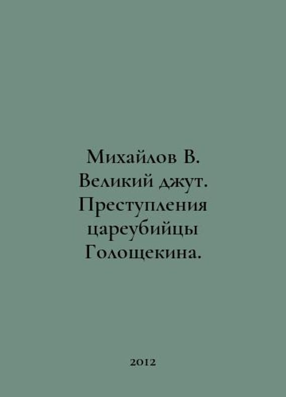 Mikhailov V. The Great Jute. The Crimes of the Tsar-Killer Holoshchekin. In Russian /Mikhaylov V. Velikiy dzhut. Prestupleniya tsareubiytsy Goloshchekina. M. Our Contemporary, Golos-Press. 2012. You are welcome to reach out to us for a detailed description of the copies currently available. Delivery of this book may take longer than usual including extended processing and pre-shipping time, no expedited shipping is available. Please advise us if you have a set date or a deadline to receive your order.SKUalbd99bd56df03abf99