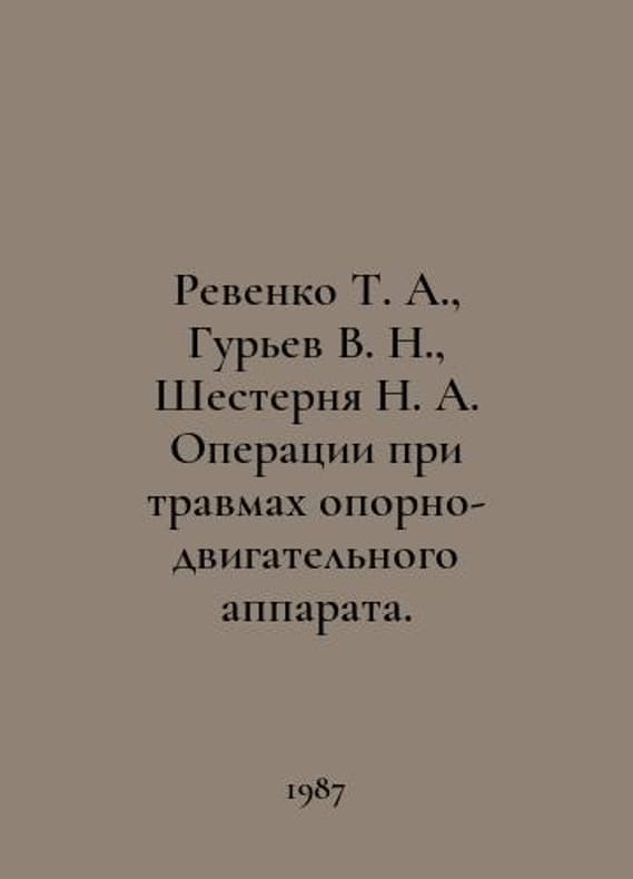 Revenko T. A., Guriev V. N., Shestnya N. A. Operations in case of injuries to the musculoskeletal system. In Russian /Revenko T. A., Gurev V. N., Shesternya N. A. Operatsii pri travmakh oporno-dvigatelnogo apparata. Tlas. M. Medicine. 1987.You are welcome to reach out to us for a detailed description of the copies currently available. Delivery of this book may take longer than usual including extended processing and pre-shipping time, no expedited shipping is available. Please advise us if you have a set date or a deadline to receive your order. SKUalbd9f88d3413635bf0