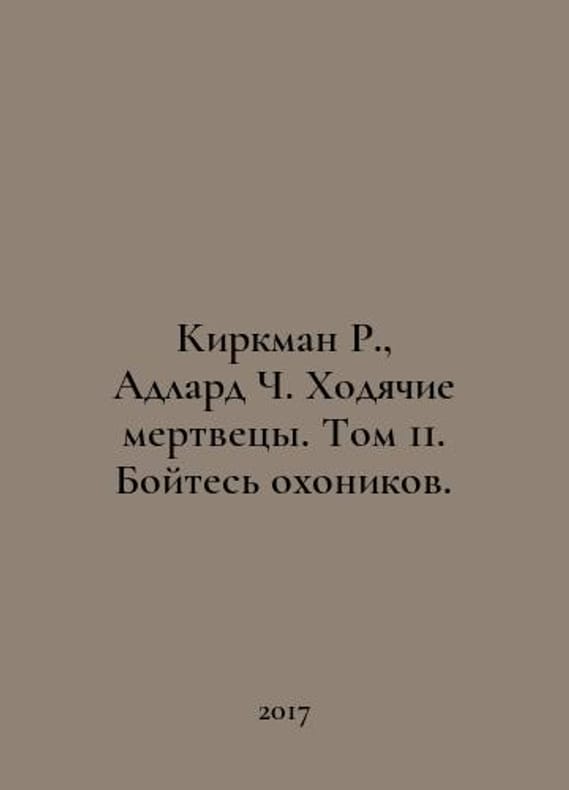 Kirkman R., Adlard C. The Walking Dead. Volume 11. Fear the Hunters. In Russian /Kirkman R., Adlard Ch. Khodyachie mertvetsy. Tom 11. Boytes okhonikov. M. Comilfo. 2017..You are welcome to reach out to us for a detailed description of the copies currently available. Delivery of this book may take longer than usual including extended processing and pre-shipping time, no expedited shipping is available. Please advise us if you have a set date or a deadline to receive your order. SKUalbd9fb9bcd6845a00f
