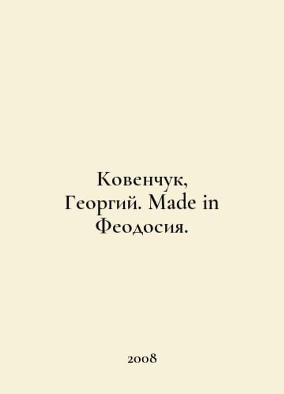 Kovenchuk, Georgy. Made in Feodosia. In Russian /Kovenchuk, Georgiy. Made in Feodosiya. Prose, drawings, exhibition catalogue. St. Petersburg Matisse Club 2008. You are welcome to reach out to us for a detailed description of the copies currently available. SKUalbda194825ee5c731f.