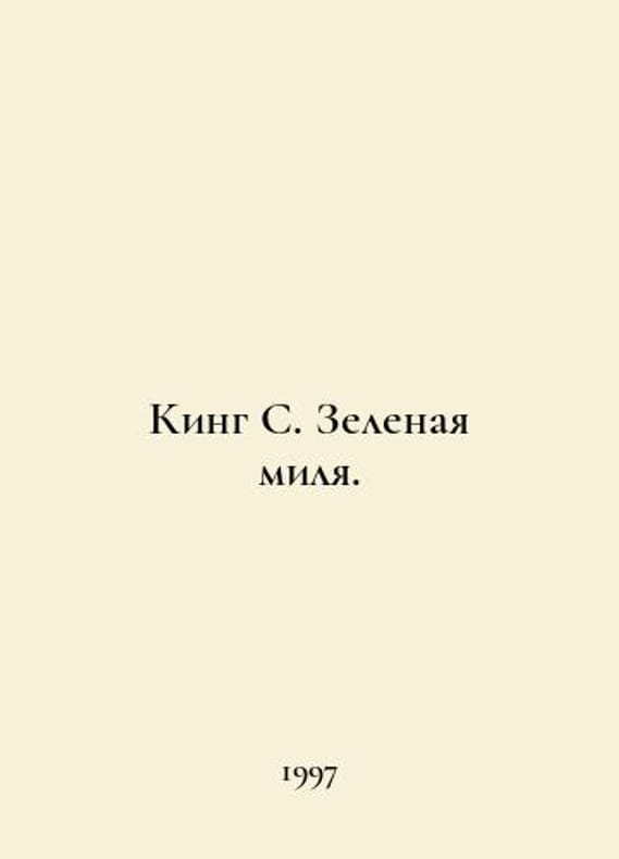 King S. The Green Mile. In Russian /King S. Zelenaya milya. Roman in six parts. First edition in Russian. Moscow, AST. 1997..You are welcome to reach out to us for a detailed description of the copies currently available. Delivery of this book may take longer than usual including extended processing and pre-shipping time, no expedited shipping is available. Please advise us if you have a set date or a deadline to receive your order. SKUalbdb8cd4b7c2bb79eb