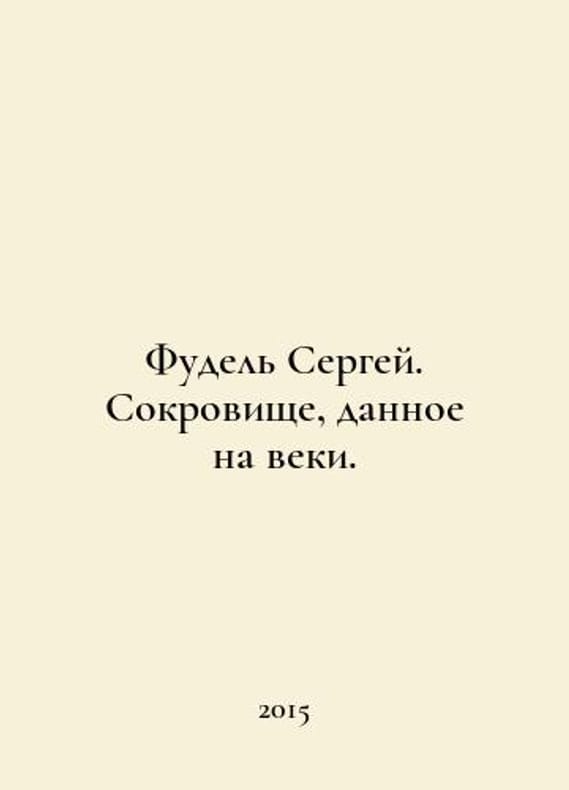 Fudel Sergey. A treasure given for ever. In Russian /Fudel Sergey. Sokrovishche, dannoe na veki. M ES. 2015. You are welcome to reach out to us for a detailed description of the copies currently available. Delivery of this book may take longer than usual including extended processing and pre-shipping time, no expedited shipping is available. Please advise us if you have a set date or a deadline to receive your order.SKUalbdba4dcc59379731f
