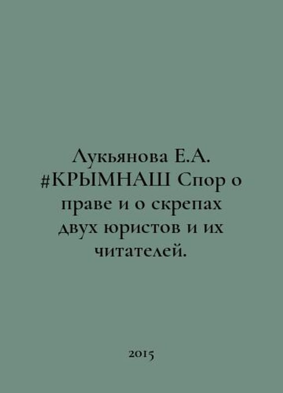 Lukyanova E.A. # KRYMNASH A dispute about the law and the crossings between two lawyers and their readers. In Russian /Lukyanova E.A. #KRYMNASh Spor o prave i o skrepakh dvukh yuristov i ikh chitateley. Kuchkovo Pole Moscow 2015. You are welcome to reach out to us for a detailed description of the copies currently available. Delivery of this book may take longer than usual including extended processing and pre-shipping time, no expedited shipping is available. Please advise us if you have a set date or a deadline to receive your order.SKUalbdc5bb863b42510ff