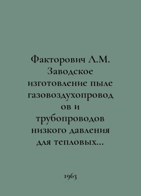Factorovich L.M. Factory manufacture of dust and gas-and-air pipelines and low-pressure pipelines for thermal power plants. In Russian /Faktorovich L.M. Zavodskoe izgotovlenie pylegazovozdukhoprovodov i truboprovodov nizkogo davleniya dlya teplovykh elektrostantsiy. Leningrad Gostoptekhnizdat 1963.You are welcome to reach out to us for a detailed description of the copies currently available. SKUalbdd25e9c87a62e95d.