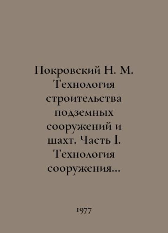 Pokrovsky N. M. Technology of construction of underground structures and mines. Part I. Technology of construction of horizontal openings and tunnels. In Russian /Pokrovskiy N. M. Tekhnologiya stroitelstva podzemnykh sooruzheniy i shakht. Chast I. Tekhnologiya sooruzheniya gorizontalnykh vyrabotok i tonneley. M. Nedra. 1977..You are welcome to reach out to us for a detailed description of the copies currently available. Delivery of this book may take longer than usual including extended processing and pre-shipping time, no expedited shipping is available. Please advise us if you have a set date or a deadline to receive your order. SKUalbdd3fecc321833b5a