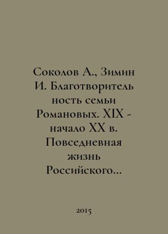 Sokolov A., Zimin I. Charity of the Romanov family In Russian /Sokolov A., Zimin I. Blagotvoritelnost semi Romanovykh. XIX - nachalo XX v. Povsednevnaya zhizn Rossiyskogo imperatorskogo dvora. Series: 400 Years of the House of Romanov M. Centropolygraph 2015. You are welcome to reach out to us for a detailed description of the copies currently available. Delivery of this book may take longer than usual including extended processing and pre-shipping time, no expedited shipping is available. Please advise us if you have a set date or a deadline to receive your order.SKUalbdd5bc50efd08e6e9