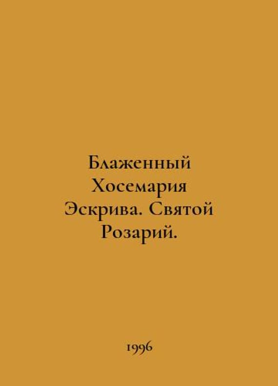 Blessed Josemaria Escriva. The Holy Rosary. In Russian /Blazhennyy Khosemariya Eskriva. Svyatoy Rozariy. M Truth and Life. 1996..You are welcome to reach out to us for a detailed description of the copies currently available. Delivery of this book may take longer than usual including extended processing and pre-shipping time, no expedited shipping is available. Please advise us if you have a set date or a deadline to receive your order. SKUalbde78ba2ba5f26ae0