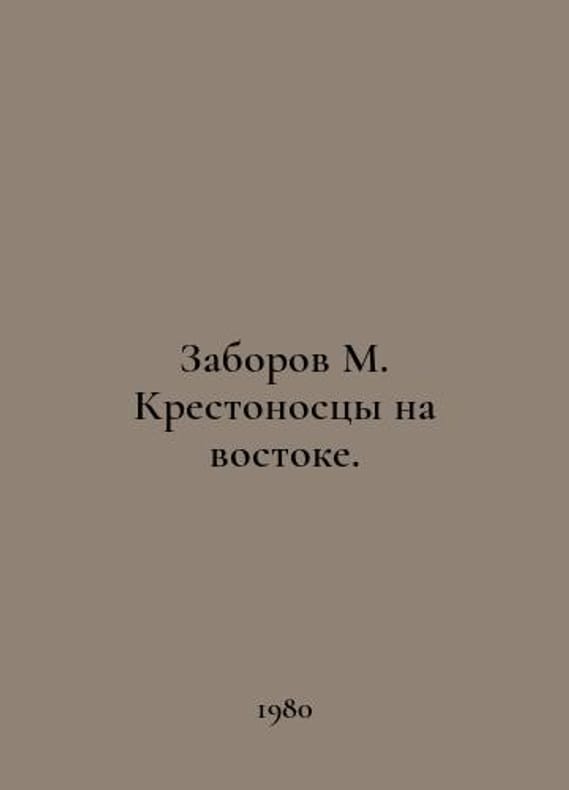 Fences M. Crusaders in the East. In Russian /Zaborov M. Krestonostsy na vostoke. M Science 1980. You are welcome to reach out to us for a detailed description of the copies currently available. Delivery of this book may take longer than usual including extended processing and pre-shipping time, no expedited shipping is available. Please advise us if you have a set date or a deadline to receive your order.SKUalbdef4ab3dcc55c18c