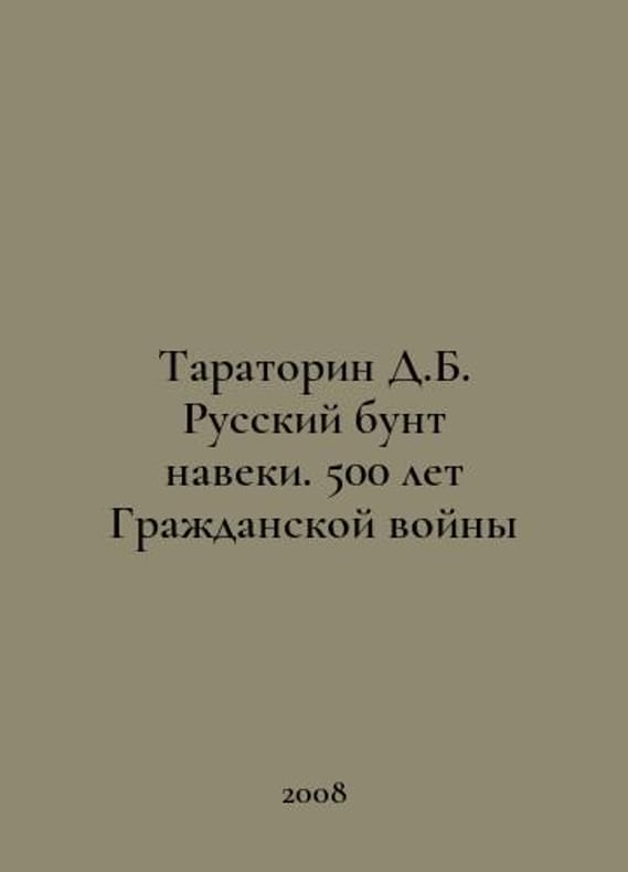 Taratorin D.B. The Russian Revolt Forever. 500 Years of the Civil War In Russian /Taratorin D.B. Russkiy bunt naveki. 500 let Grazhdanskoy voyny Yauza-Eksmo Moscow 2008. You are welcome to reach out to us for a detailed description of the copies currently available. Delivery of this book may take longer than usual including extended processing and pre-shipping time, no expedited shipping is available. Please advise us if you have a set date or a deadline to receive your order.SKUalbdfee8cab08e3fc2c