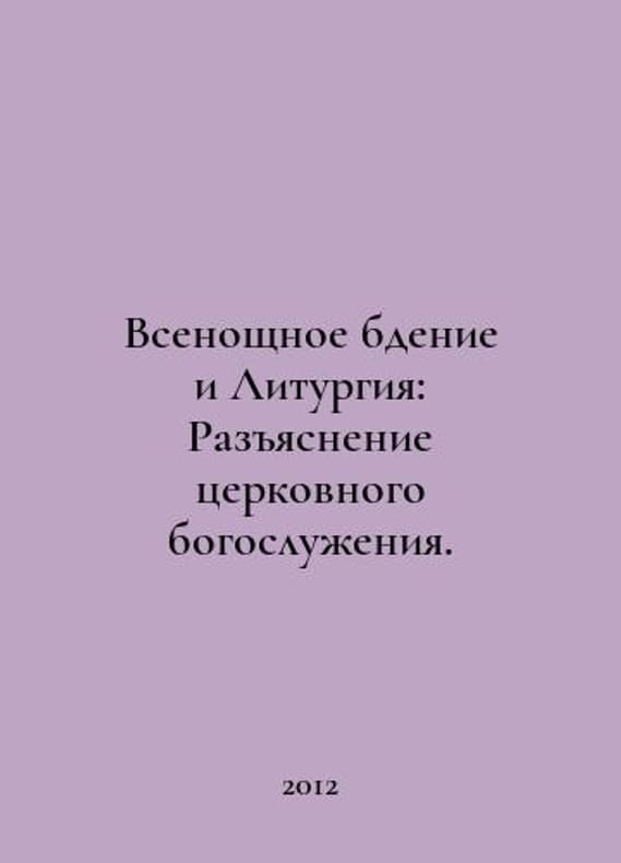 "All-Night Vigil and Liturgy: Clarification of the Church Service. In Russian /Vsenoshchnoe bdenie i Liturgiya: Raz""yasnenie tserkovnogo bogosluzheniya. Issue 6 M 2012..You are welcome to reach out to us for a detailed description of the copies currently available. Delivery of this book may take longer than usual including extended processing and pre-shipping time, no expedited shipping is available. Please advise us if you have a set date or a deadline to receive your order. SKUalbe05d98788f59fc40"