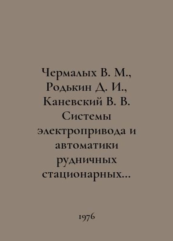 Chermalov V. M., Rodkin D. I., Kanevsky V. V. Systems of electric drive and automation of mine stationary machines and installations In Russian /Chermalykh V. M., Rodkin D. I., Kanevskiy V. V. Sistemy elektroprivoda i avtomatiki rudnichnykh statsionarnykh mashin i ustanovok. M. Nedra 1976..You are welcome to reach out to us for a detailed description of the copies currently available. Delivery of this book may take longer than usual including extended processing and pre-shipping time, no expedited shipping is available. Please advise us if you have a set date or a deadline to receive your order. SKUalbe0ade07b2062c814