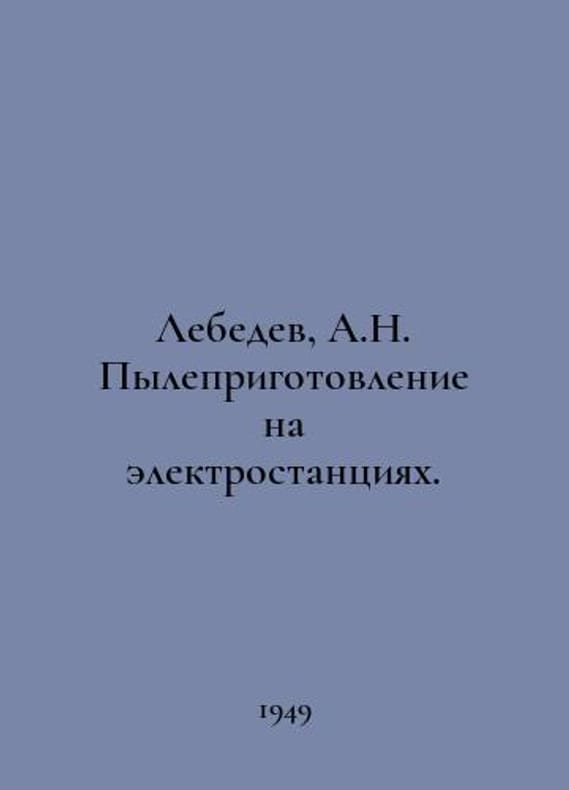 Lebedev, A.N. Dust preparation at power plants. In Russian /Lebedev, A.N. Pyleprigotovlenie na elektrostantsiyakh. Moscow-Leningrad Gosenergoizdat 1949.You are welcome to reach out to us for a detailed description of the copies currently available. SKUalbe0dd9895d0003d73.