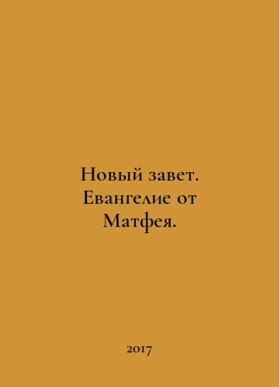 The New Testament. The Gospel of Matthew. In Russian /Novyy zavet. Evangelie ot Matfeya. Minsk St. Elizabeth Monastery 2017..You are welcome to reach out to us for a detailed description of the copies currently available. Delivery of this book may take longer than usual including extended processing and pre-shipping time, no expedited shipping is available. Please advise us if you have a set date or a deadline to receive your order. SKUalbe15d628efcddd8df