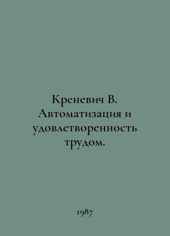 Krenevich V. Automation and Work Satisfaction. In Russian /Krenevich V. Avtomatizatsiya i udovletvorennost trudom. M Thought 1987.You are welcome to reach out to us for a detailed description of the copies currently available. SKUalbe242f270423cdecc.