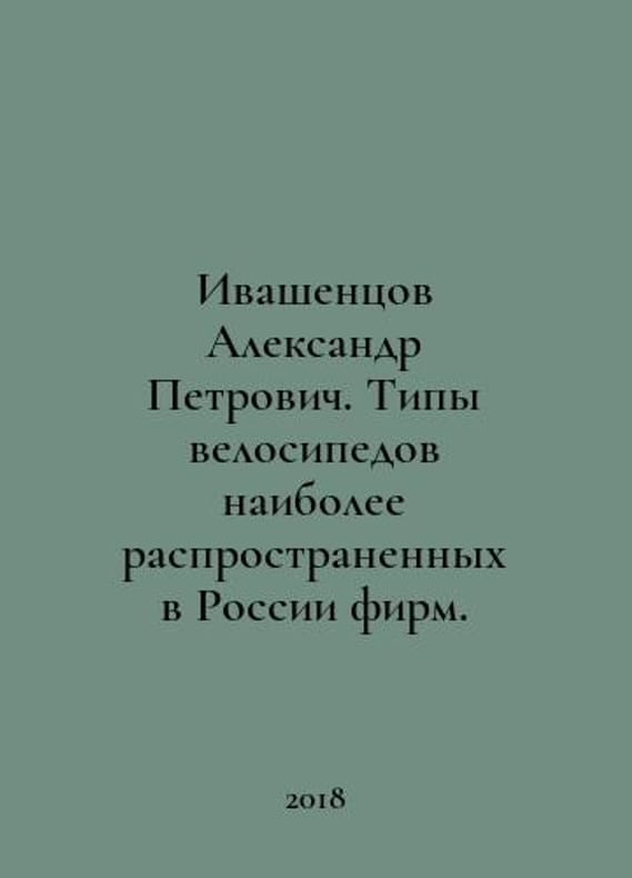 Alexander Petrovich Ivashentsov. Types of bicycles of the most common companies in Russia. In Russian /Ivashentsov Aleksandr Petrovich. Tipy velosipedov naibolee rasprostranennykh v Rossii firm. Moscow Publishing House V. Sekachev 2018. You are welcome to reach out to us for a detailed description of the copies currently available. Delivery of this book may take longer than usual including extended processing and pre-shipping time, no expedited shipping is available. Please advise us if you have a set date or a deadline to receive your order.SKUalbe35da4ce95cee6f1