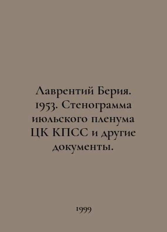 Lavrentiy Beria. 1953. Verbatim record of the July plenum of the CPSU Central Committee and other documents. In Russian /Lavrentiy Beriya. 1953. Stenogramma iyulskogo plenuma TsK KPSS i drugie dokumenty. Series: Russia. XX Century. Compiled by Naumov V., Sigachev Yu. M. Publishing House of the International Foundation for Democracy. 1999. You are welcome to reach out to us for a detailed description of the copies currently available. Delivery of this book may take longer than usual including extended processing and pre-shipping time, no expedited shipping is available. Please advise us if you have a set date or a deadline to receive your order.SKUalbe67fa4b62e1afd6a