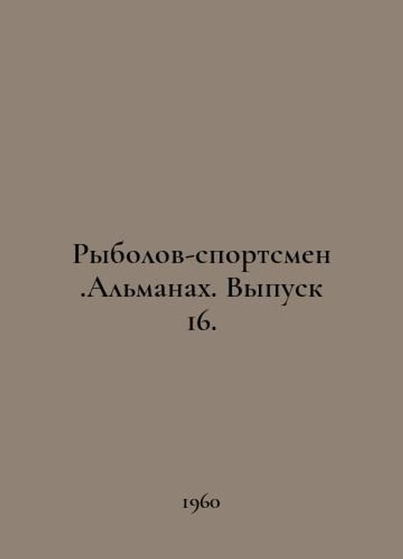 Fishermen-athletes. Almanac, Issue 16. In Russian /Rybolov-sportsmen.Almanakh. Vypusk 16. M. GIZ Physical Culture and Sport. 1960..You are welcome to reach out to us for a detailed description of the copies currently available. Delivery of this book may take longer than usual including extended processing and pre-shipping time, no expedited shipping is available. Please advise us if you have a set date or a deadline to receive your order. SKUalbe76c3d10fcb3fc81
