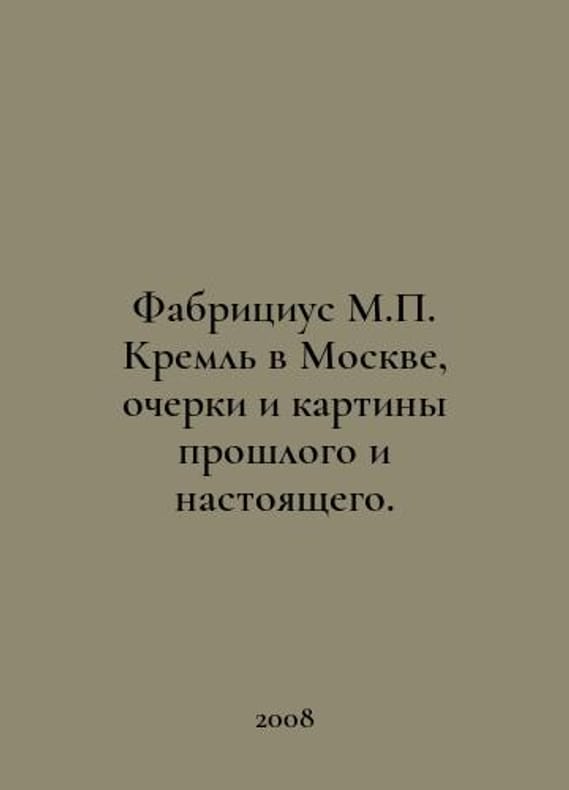 Fabricius M. Kremlin in Moscow, sketches and paintings of the past and the present. In Russian /Fabritsius M. Kreml v Moskve, ocherki i kartiny proshlogo i nastoyashchego. Printed according to the 1883 edition. The text is illustrated by 76 drawings and 14 engravings made from nature. You are welcome to reach out to us for a detailed description of the copies currently available. Delivery of this book may take longer than usual including extended processing and pre-shipping time, no expedited shipping is available. Please advise us if you have a set date or a deadline to receive your order.SKUalbe7e4beda4c2d4ef3