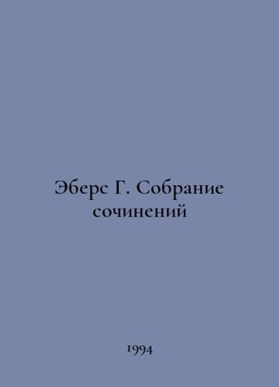 Ebers G. A collection of essays In Russian /Ebers G. Sobranie sochineniy Moscow Publishing House KUBK-a. 1994. You are welcome to reach out to us for a detailed description of the copies currently available. Delivery of this book may take longer than usual including extended processing and pre-shipping time, no expedited shipping is available. Please advise us if you have a set date or a deadline to receive your order.SKUalbe83c7b884c22f0f5