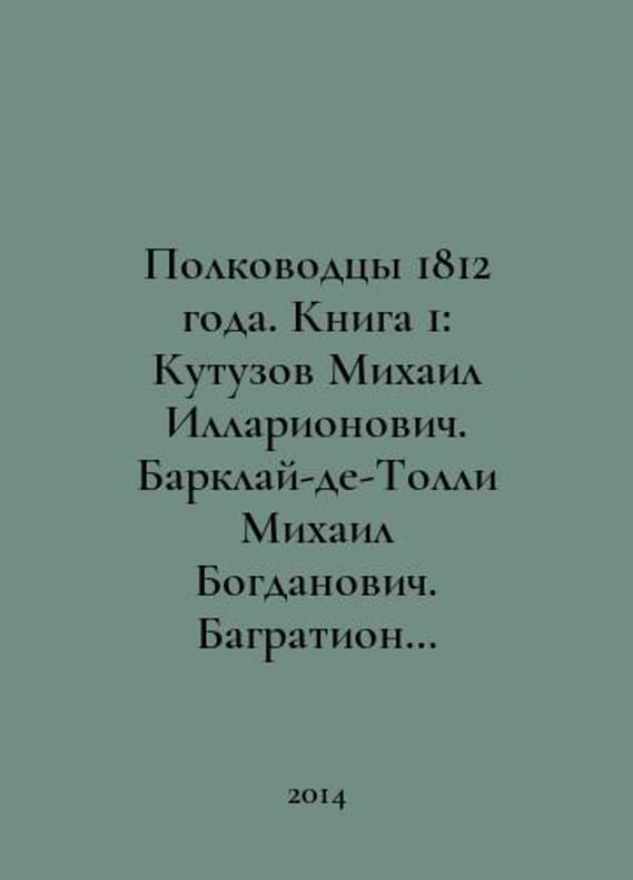 Commanders of 1812. Book 1: Kutuzov Mikhail Illarionovich. Barclay de Tolli Mikhail Bogdanovich. Bagration Petr Ivanovich. Wittgenstein Petr Khristianovich. Alexey Arakcheev. Vintingerode Ferdinand Fedorovich. In Russian /Polkovodtsy 1812 goda. Kniga 1: Kutuzov Mikhail Illarionovich. Barklay-de-Tolli Mikhail Bogdanovich. Bagration Petr Ivanovich. Vitgenshteyn Petr Khristianovich. Arakcheev Aleksey Andreevich. Vintsingerode Ferdinand Fedorovich. Series: Great Commanders of Russia. Russian Military Historical Society. Moscow. Komsomolskaya Pravda. 2014. You are welcome to reach out to us for a detailed description of the copies currently available. Delivery of this book may take longer than usual including extended processing and pre-shipping time, no expedited shipping is available. Please advise us if you have a set date or a deadline to receive your order.SKUalbe9ac82fe745780c5