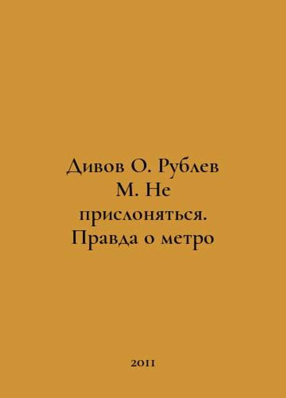 Divov O. Rublev M. Dont lean back. The truth about the subway In Russian /Divov O. Rublev M. Ne prislonyatsya. Pravda o metro M. Exmo 2011. You are welcome to reach out to us for a detailed description of the copies currently available. SKUalbe9f63be463ead300.