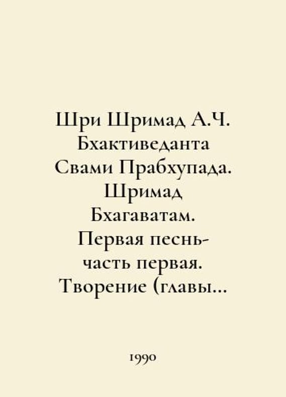 Sri Srimad A.C. Bhaktivedanta Swami Prabhupada. Srimad Bhagavatam. First Song - Part One. Creation (chapters 1-9), First Song. Creation - Part Two (chapters 10-19), Second Song In Russian /Shri Shrimad A.Ch. Bkhaktivedanta Svami Prabkhupada. Shrimad Bkhagavatam. Pervaya pesn-chast pervaya. Tvorenie (glavy 1-9), Pervaya pesn. Tvorenie-chast vtoraya (glavy 10-19), Vtoraya pesn. Kosmicheskoe proyavlenie,Tretya pesn. Status kvo(glavy 1-12) Bhaktivedanta Beech Trust 1990.You are welcome to reach out to us for a detailed description of the copies currently available. SKUalbea15196d5c75d7c0.