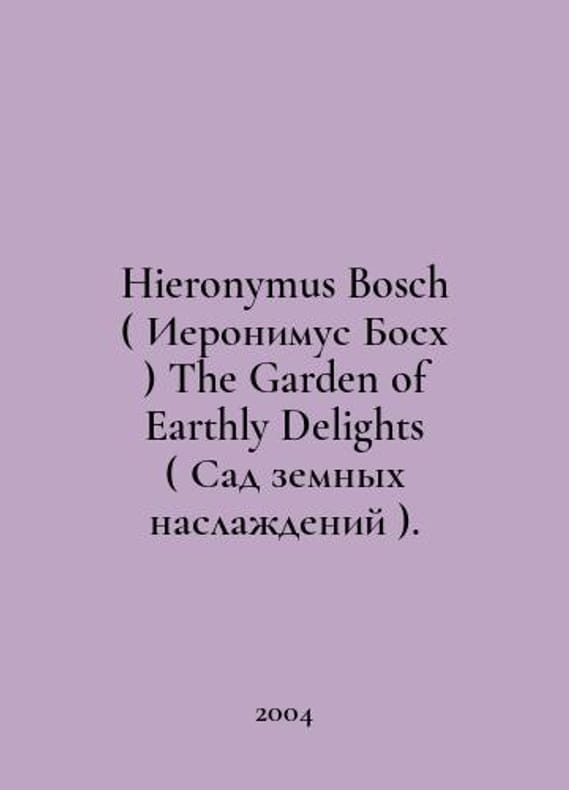 Hieronymus Bosch The Garden of Earthly Delights. In English /Hieronymus Bosch ( Ieronimus Boskh ) The Garden of Earthly Delights ( Sad zemnykh naslazhdeniy ). Series: Prestel Minis. In English. Munich-Berlin-London-New York Prestel Verlag 2004..You are welcome to reach out to us for a detailed description of the copies currently available. Delivery of this book may take longer than usual including extended processing and pre-shipping time, no expedited shipping is available. Please advise us if you have a set date or a deadline to receive your order. SKUalbea836911164fe1ae
