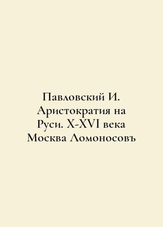Pavlovsky I. Aristocracy in Russia. 10th-16th century Moscow Lomonosov In Russian /Pavlovskiy I. Aristokratiya na Rusi. X-XVI veka Moskva Lomonosov Series: History. Geography. Ethnography. M. Lomonosov 2022. 224s. You are welcome to reach out to us for a detailed description of the copies currently available. Delivery of this book may take longer than usual including extended processing and pre-shipping time, no expedited shipping is available. Please advise us if you have a set date or a deadline to receive your order.SKUalbebae0ef094f4e08e