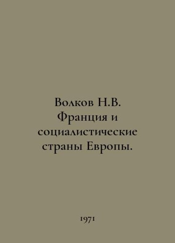 Volkov N.V. France and the Socialist Countries of Europe. In Russian /Volkov N.V. Frantsiya i sotsialisticheskie strany Evropy. Economic, Scientific and Technological Relations. M. International Relations. 1971. You are welcome to reach out to us for a detailed description of the copies currently available. SKUalbecca400b9bd7d88a.