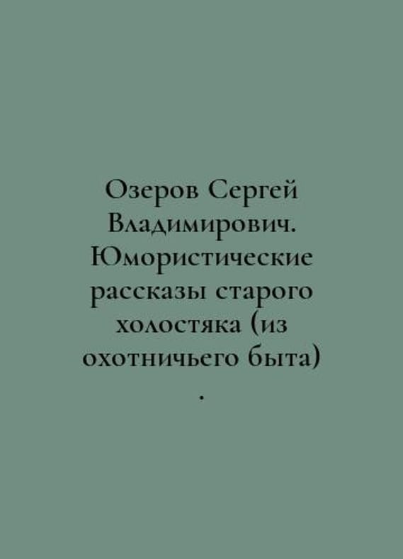 Sergei Vladimirovich Ozerov. Humorous stories of an old bachelor (from a hunting life). In Russian /Ozerov Sergey Vladimirovich. Yumoristicheskie rasskazy starogo kholostyaka (iz okhotnichego byta). Tyre 1, Moscow Publishing House, V. Sekachev, 2024, 68s. You are welcome to reach out to us for a detailed description of the copies currently available. Delivery of this book may take longer than usual including extended processing and pre-shipping time, no expedited shipping is available. Please advise us if you have a set date or a deadline to receive your order.SKUalbee2c7afaeda1c9f3