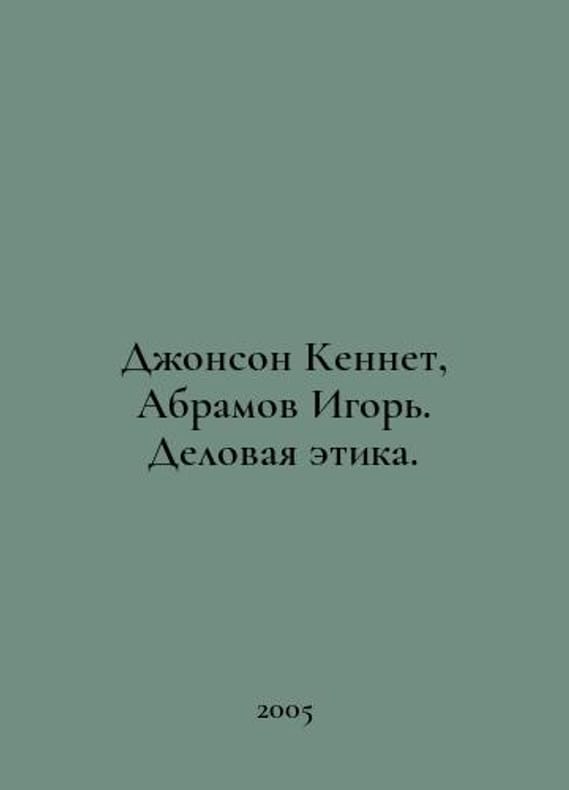 Johnson Kenneth, Abramov Igor. Business Ethics. In Russian /Dzhonson Kennet, Abramov Igor. Delovaya etika. Manual for Responsible Enterprise Management in Emerging Markets Washington, DC US Department of Commerce 2005.You are welcome to reach out to us for a detailed description of the copies currently available. SKUalbef079c013f91d862.