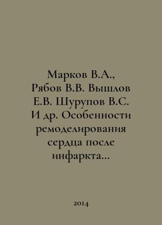 Markov V.A., Ryabov V.V. Vyshlov E.V. Shurupov V.S. et al. Peculiarities of heart remodeling after myocardial infarction in pharmacoinvasive methods of reperfusion and enhanced external counterpulsation. In Russian /Markov V.A., Ryabov V.V. Vyshlov E.V. Shurupov V.S. I dr. Osobennosti remodelirovaniya serdtsa posle infarkta miokarda pri farmakoinvazivnykh metodakh reperfuzii i usilennoy naruzhnoy kontrpulsatsii. Tomsk STT 2014 year..You are welcome to reach out to us for a detailed description of the copies currently available. Delivery of this book may take longer than usual including extended processing and pre-shipping time, no expedited shipping is available. Please advise us if you have a set date or a deadline to receive your order. SKUalbf131d1cc91ab5932