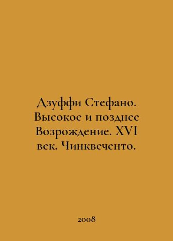 Zuffi Stefano. High and Late Renaissance. Sixteenth Century. Cinquecento. In Russian /Dzuffi Stefano. Vysokoe i pozdnee Vozrozhdenie. XVI vek. Chinkvechento. Series: Art Epochs., 2008. You are welcome to reach out to us for a detailed description of the copies currently available. Delivery of this book may take longer than usual including extended processing and pre-shipping time, no expedited shipping is available. Please advise us if you have a set date or a deadline to receive your order.SKUalbf156010d0a47a0d0