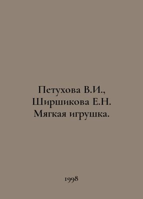 Petukhova V.I., Shirshikova E.N. Soft toy. In Russian /Petukhova V.I., Shirshikova E.N. Myagkaya igrushka. Moscow publisher I.V.Balabanov 1998..You are welcome to reach out to us for a detailed description of the copies currently available. Delivery of this book may take longer than usual including extended processing and pre-shipping time, no expedited shipping is available. Please advise us if you have a set date or a deadline to receive your order. SKUalbf3220c946f47b91e