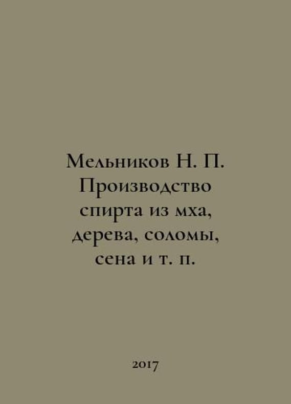 Melnikov N. Production of alcohol from moss, wood, straw, hay, etc. In Russian /Melnikov N. Proizvodstvo spirta iz mkha, dereva, solomy, sena i t. p. Moscow Publishing House V. Sekachev 2017. You are welcome to reach out to us for a detailed description of the copies currently available. Delivery of this book may take longer than usual including extended processing and pre-shipping time, no expedited shipping is available. Please advise us if you have a set date or a deadline to receive your order.SKUalbf40265787c2d9a0e