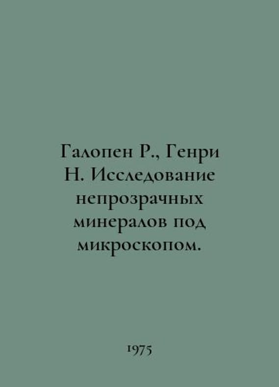Galopen R., Henry N. Investigation of opaque minerals under the microscope. In Russian /Galopen R., Genri N. Issledovanie neprozrachnykh mineralov pod mikroskopom. Series: Earth Sciences. Fundamental works of foreign scientists in geology, geophysics, and geochemistry. Translated from English. M. Mir. 1975..You are welcome to reach out to us for a detailed description of the copies currently available. Delivery of this book may take longer than usual including extended processing and pre-shipping time, no expedited shipping is available. Please advise us if you have a set date or a deadline to receive your order. SKUalbf4f6ab525c08600f