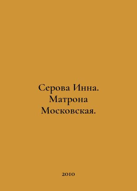 Serova Inna. Matron of Moscow. In Russian /Serova Inna. Matrona Moskovskaya. Series: The Help of the Saints. St. Petersburg: The Verb of Good 2010. You are welcome to reach out to us for a detailed description of the copies currently available. Delivery of this book may take longer than usual including extended processing and pre-shipping time, no expedited shipping is available. Please advise us if you have a set date or a deadline to receive your order.SKUalbf556c43689685bbe