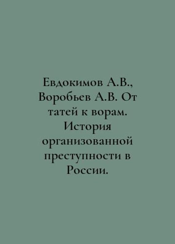 A.V. Evdokimov, A.V. Vorobyov From Tatars to Thieves. The History of Organized Crime in Russia. In Russian /Evdokimov A.V., Vorobev A.V. Ot tatey k voram. Istoriya organizovannoy prestupnosti v Rossii. Series: Beyond the Law: People, Clans, Groups, and Exmos 2022. 384 pp. You are welcome to reach out to us for a detailed description of the copies currently available. Delivery of this book may take longer than usual including extended processing and pre-shipping time, no expedited shipping is available. Please advise us if you have a set date or a deadline to receive your order.SKUalbf58b7b3f8cd38c2f