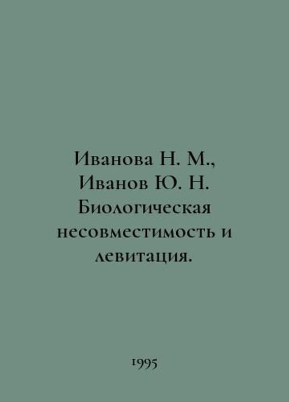 Ivanova N. M., Ivanov Yu. N. Biological incompatibility and levitation. In Russian /Ivanova N. M., Ivanov Yu. N. Biologicheskaya nesovmestimost i levitatsiya. A series-Life by Intuition. M. Ivanov Publishing House. 1995.You are welcome to reach out to us for a detailed description of the copies currently available. SKUalbf5d8c19e31c0ac07.