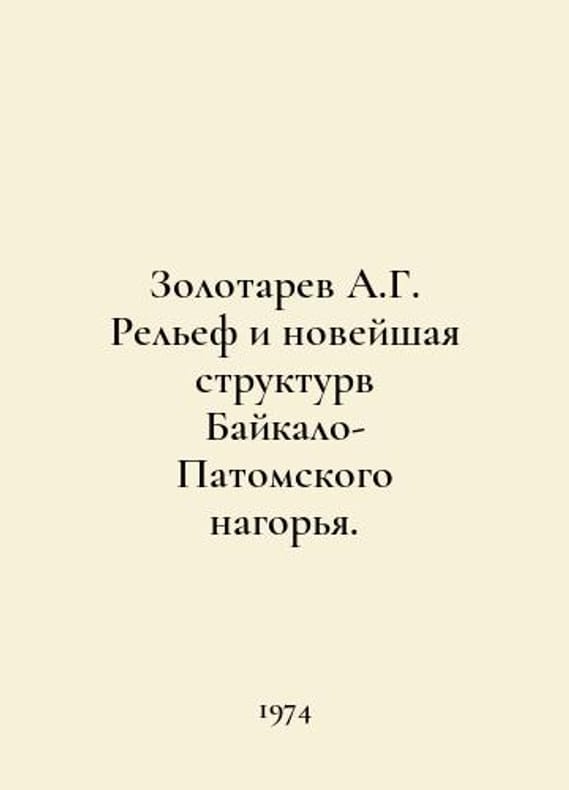 A.G. Zolotarev Relief and the New Structure of the Baikal-Patomsk Highlands. In Russian /Zolotarev A.G. Relef i noveyshaya strukturv Baykalo-Patomskogo nagorya. Novosibirsk Science 1974.You are welcome to reach out to us for a detailed description of the copies currently available. SKUalbf62c9f1b566f0431.