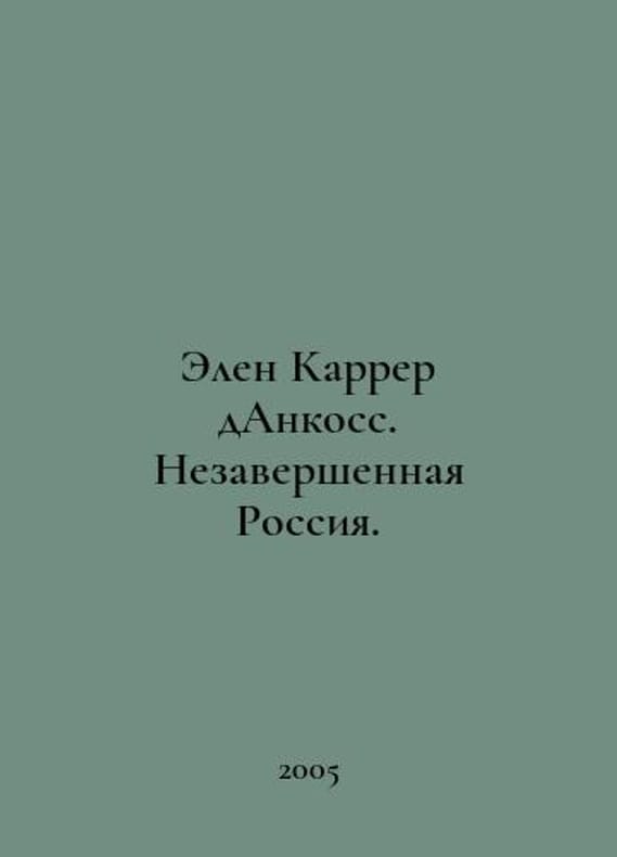 Helene Carrer dAncos. Unfinished Russia. In Russian /Elen Karrer dAnkoss. Nezavershennaya Rossiya. Translation from French. Moscow ROSSPEN, 2005. You are welcome to reach out to us for a detailed description of the copies currently available. Delivery of this book may take longer than usual including extended processing and pre-shipping time, no expedited shipping is available. Please advise us if you have a set date or a deadline to receive your order.SKUalbf68d8909f7e29fa4