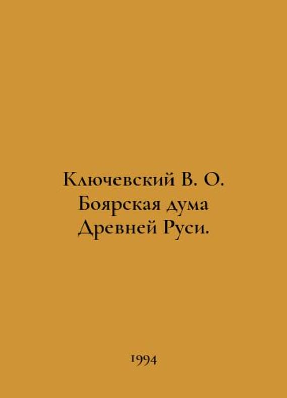 Klyuchevsky V.O. Boyarskaya Duma of Ancient Russia. In Russian /Klyuchevskiy V. O. Boyarskaya duma Drevney Rusi. M. Academic Project 2018. 412 p. We have thousands of titles and often several copies of each title may be available. Please feel free to contact us for a detailed description of the copies available. SKUalb5b5de8e1defe5655.