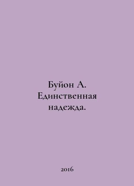 Bouillon A. The only hope. In Russian /Buyon A. Edinstvennaya nadezhda. Translated from Spanish by Zaoksky 2016..You are welcome to reach out to us for a detailed description of the copies currently available. Delivery of this book may take longer than usual including extended processing and pre-shipping time, no expedited shipping is available. Please advise us if you have a set date or a deadline to receive your order. SKUalbf850233e201bbdcc